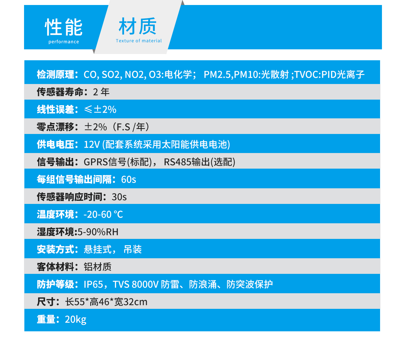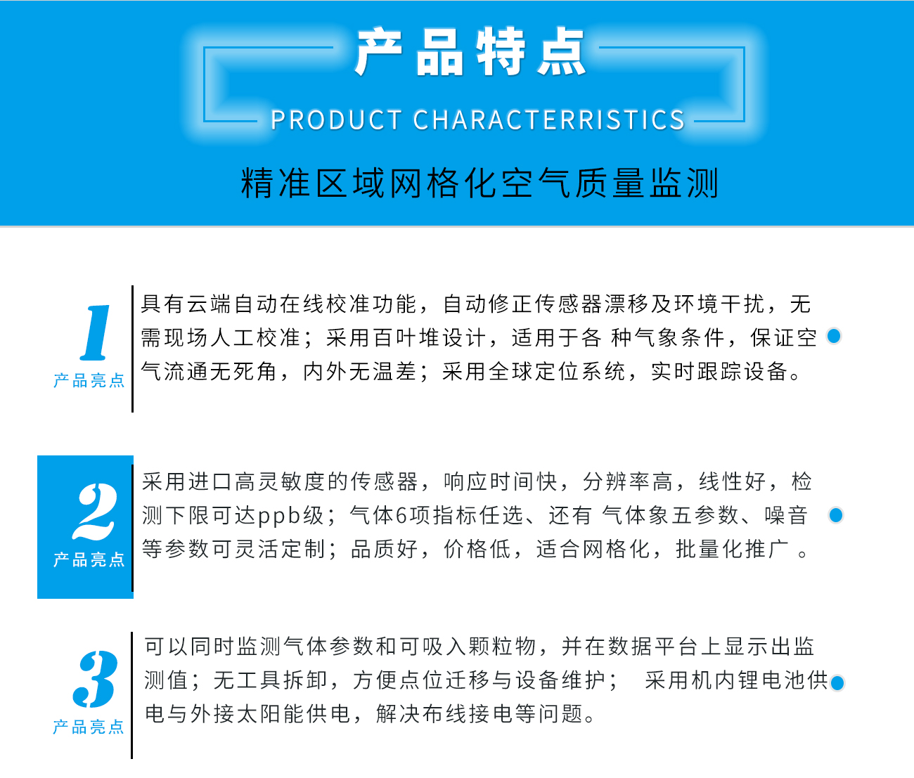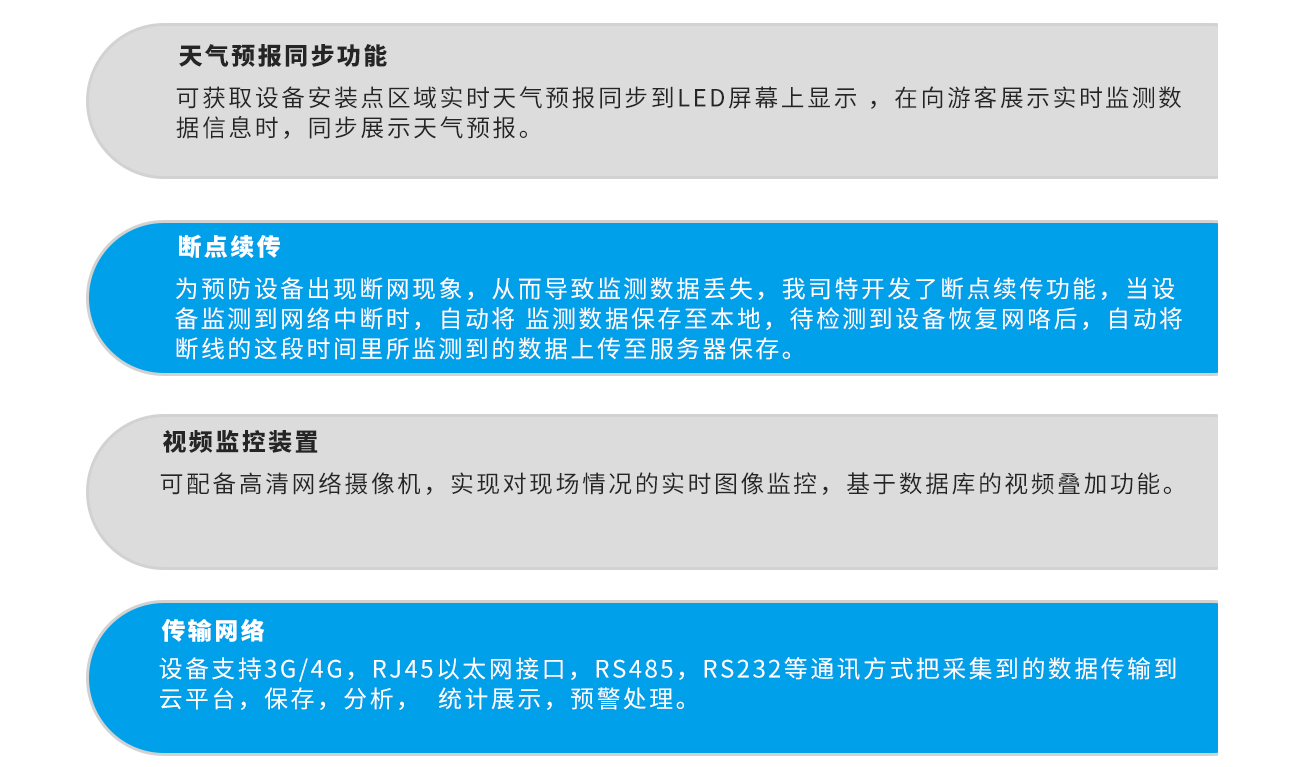 應用 : 企業化工園區,城市環境監測,市政環境監測,移動環境監測,交通污染環境監測居民區/學校/醫院空氣質量環境監測,公園/森林環境監測。